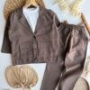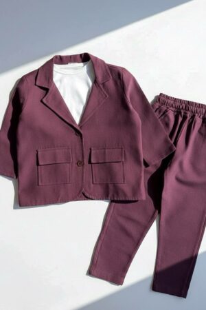 %100 Pamuklu Keten Takım Elbise (Bordo)