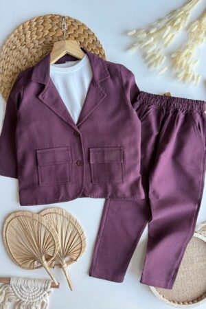 %100 Pamuklu Keten Takım Elbise (Bordo)
