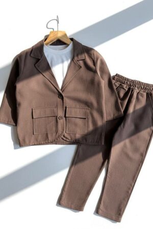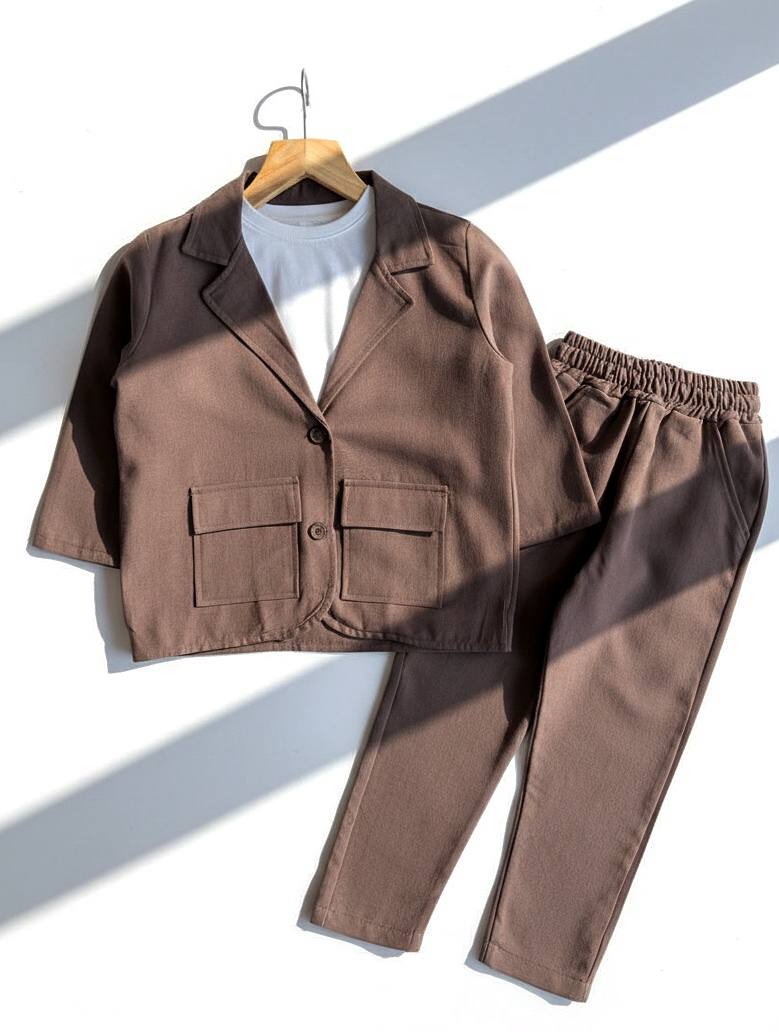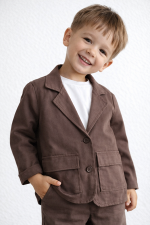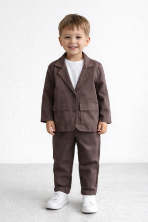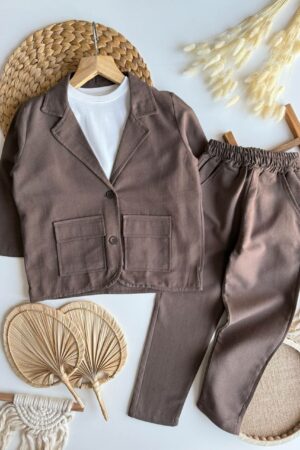 %100 Pamuklu Keten Takım Elbise (Kahverengi)