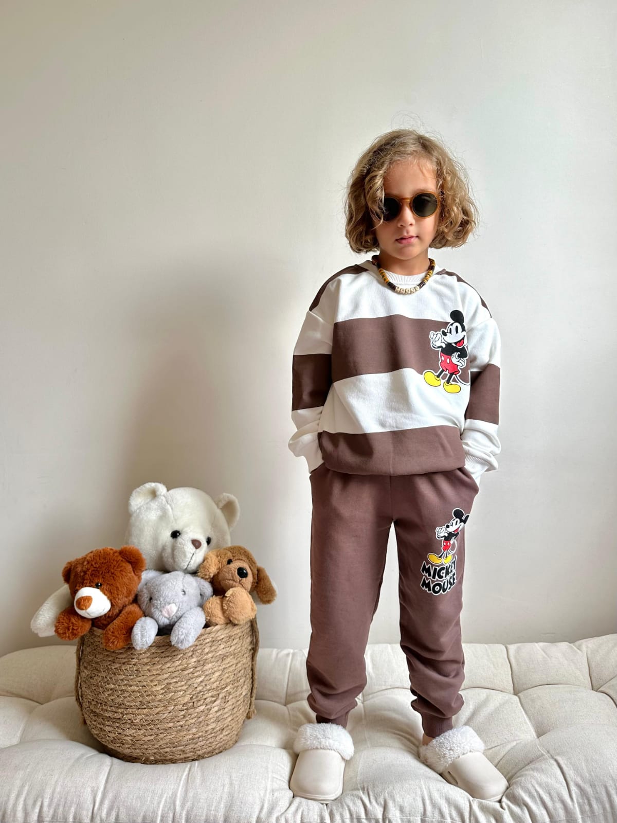 Çizgili Karakterli Erkek Çocuk Takım (Kahverengi)