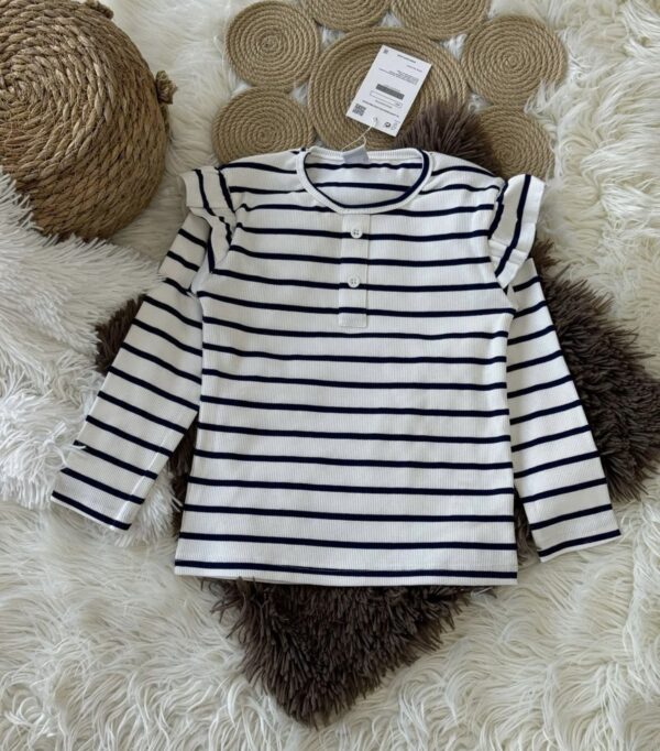 Çizgili Kız Çocuk Fitilli Fırfırlı Badi (Siyah Beyaz)