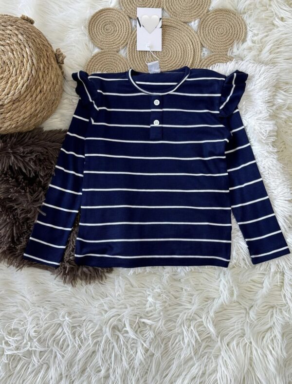 Çizgili Kız Çocuk Fitilli Fırfırlı Badi(Lacivert)