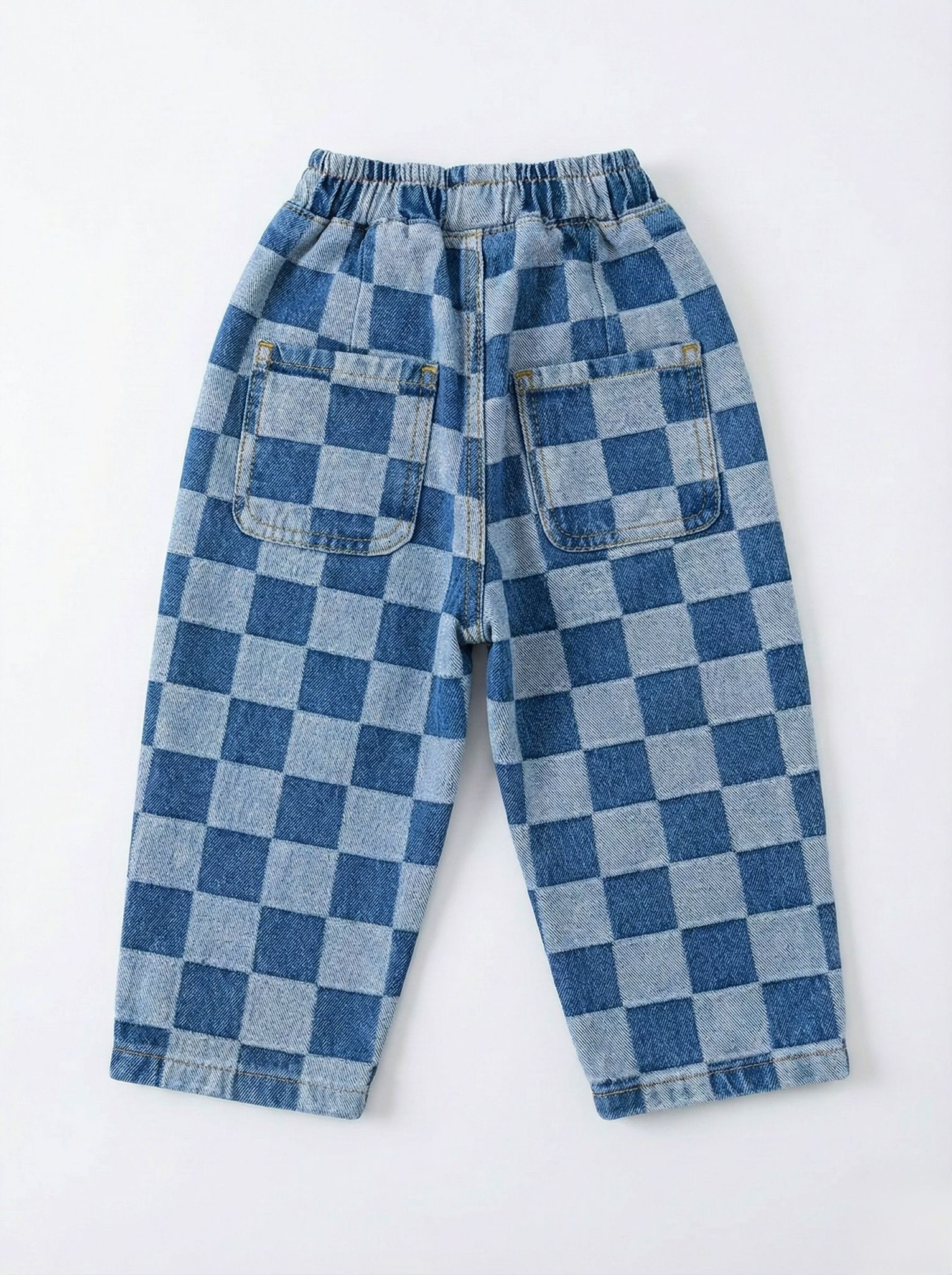 Damalı Balon Denim Pantolon