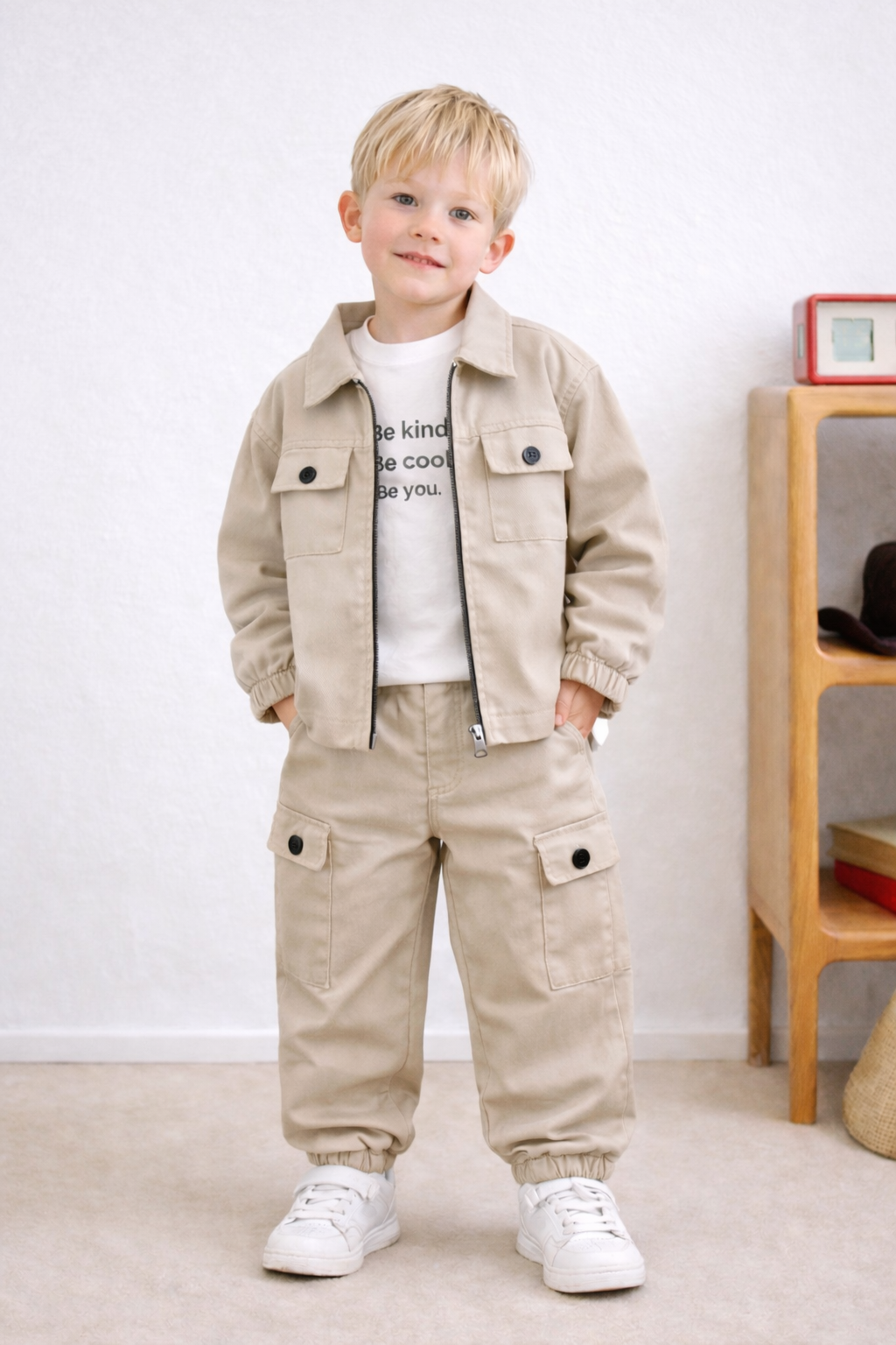 Erkek Çocuk Ceketli 3’lü Takım (Taş Rengi)