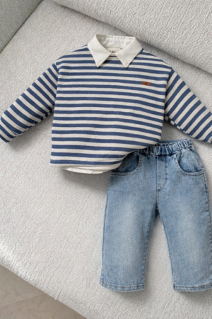 Erkek Çocuk Gömlekli 3’lü Takım (Mavi)