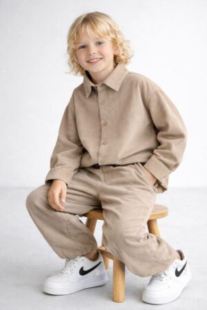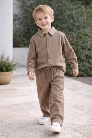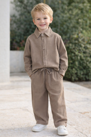 Erkek Çocuk Yumuşacık Kadife Takım (Kahve)