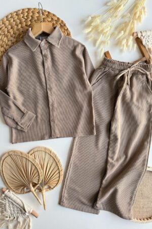 Erkek Çocuk Yumuşacık Kadife Takım (Kahve)