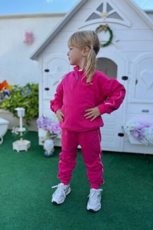 Fermuar Detaylı Yumuşacık Eşofman Takımı (Fuşya)