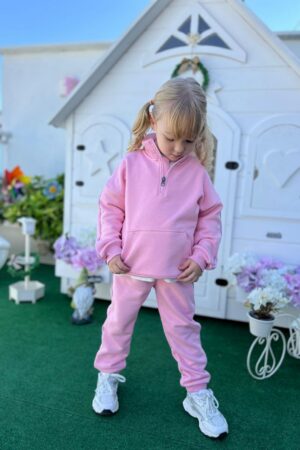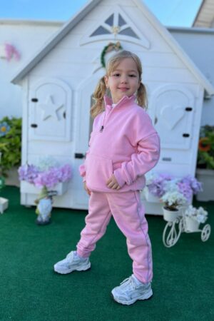 Fermuar Detaylı Yumuşacık Eşofman Takımı (Pembe)