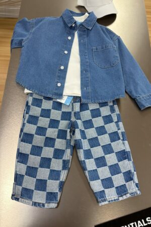 Damalı Balon Denim Pantolon - 4-5 Yaş
