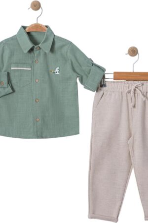 Nakış Detaylı Keten Gömlek Pantolon Takım (Mint)