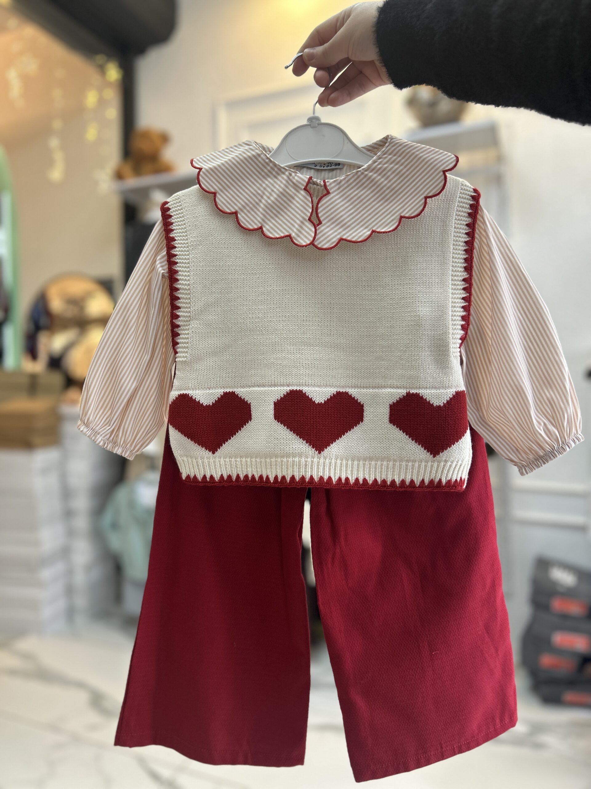 Süveterli Gömlekli 3’lü Kız Çocuk Takım