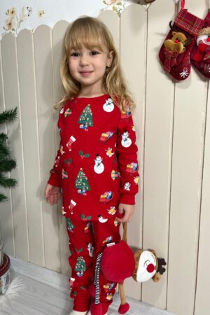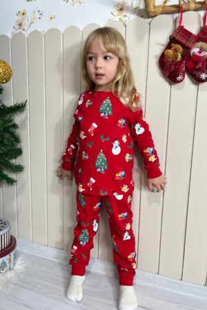 Unisex Yeni Yıl Pijama Takımı (Kırmızı)