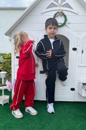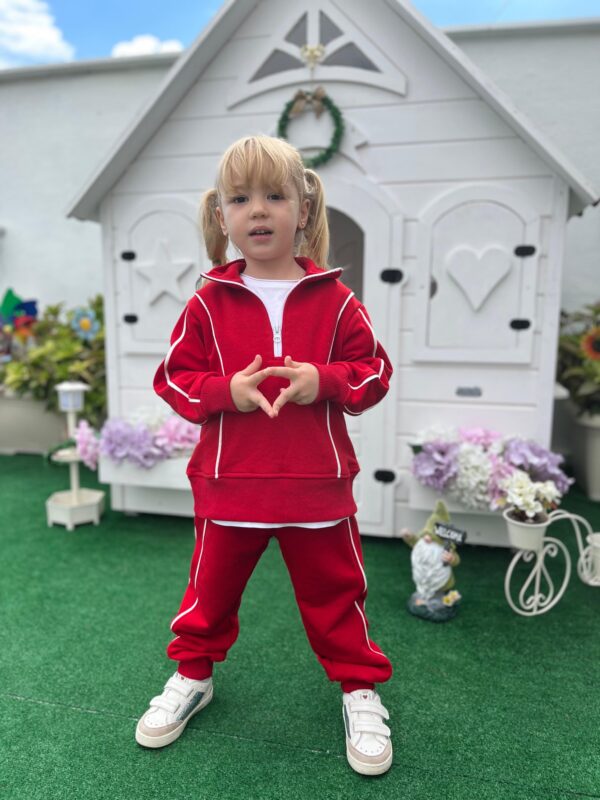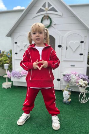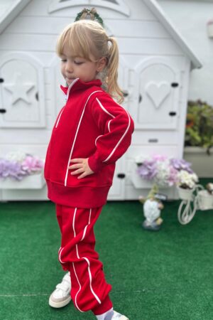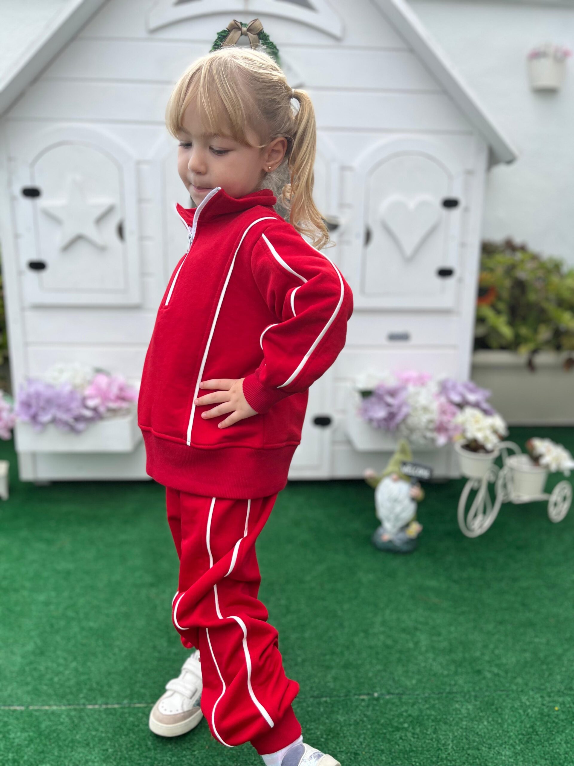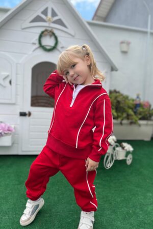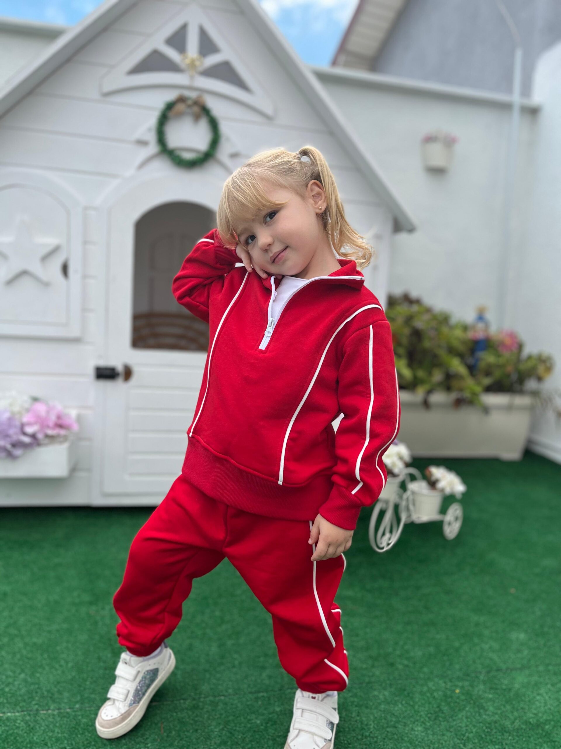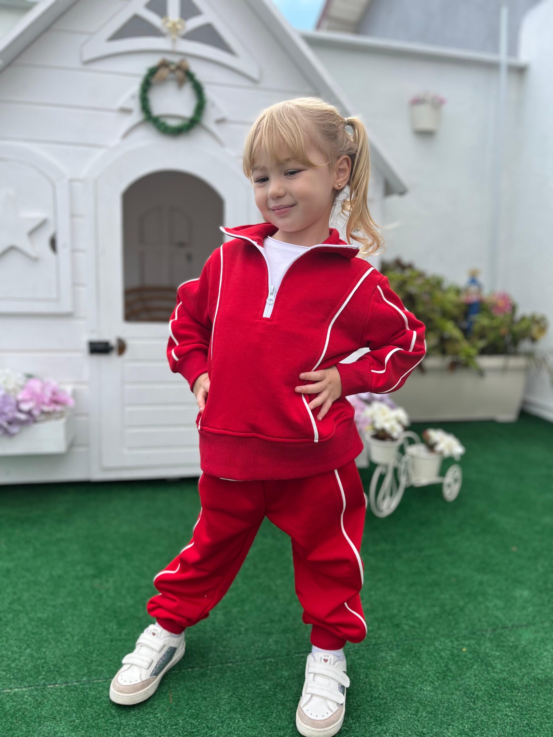 Yarım Fermuarlı Unisex Çocuk Takım (Kırmızı)