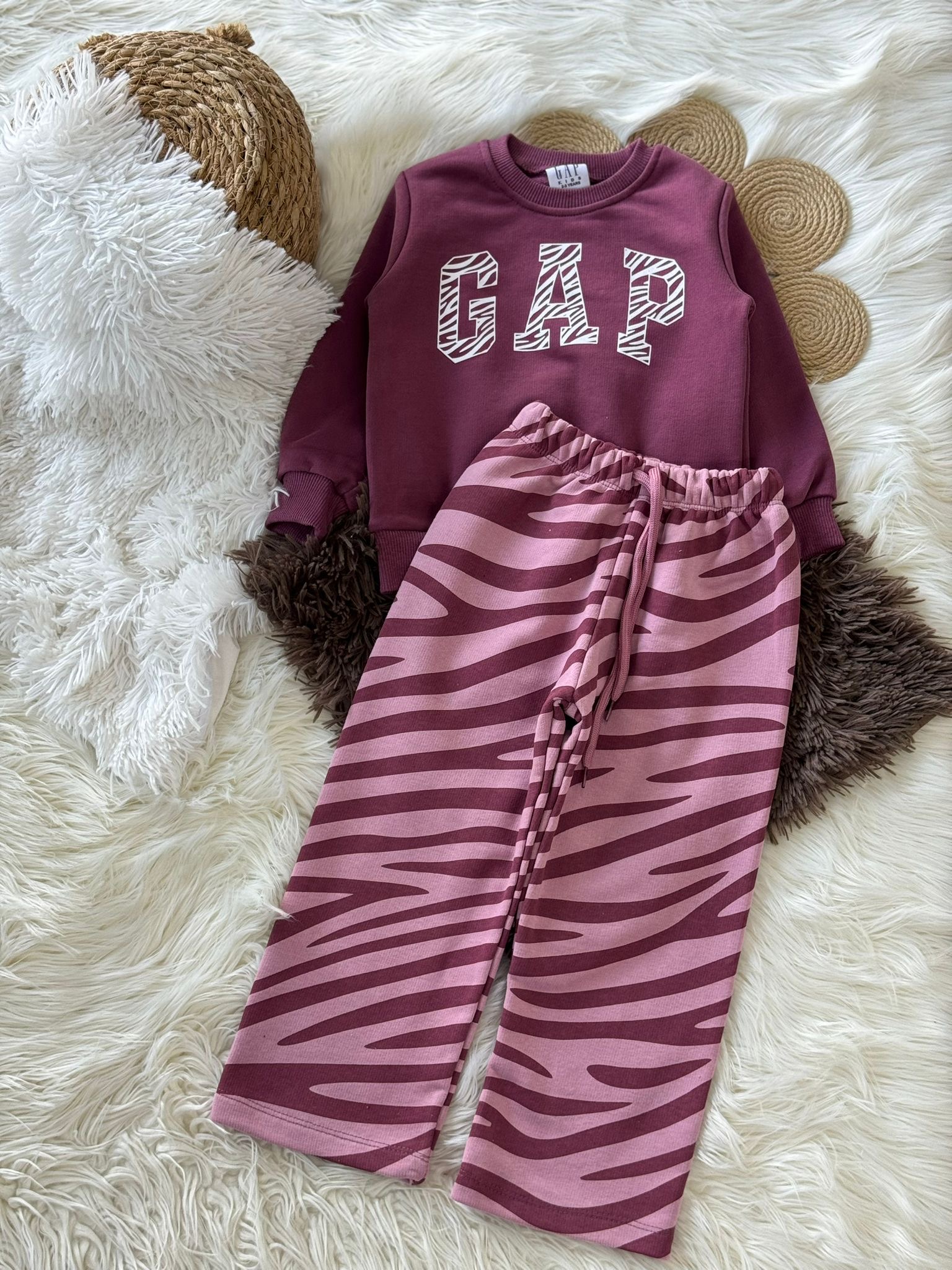 Zebra Detaylı Kız Çocuk Takım (Gül Kurusu)